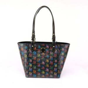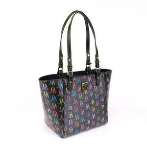 NWT Dooney Bourke Db75 It Zip Top Black Multi Coated Canvas Tote