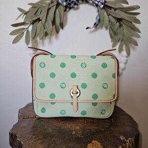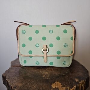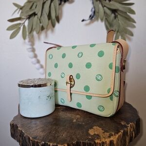 NWT Dooney & Bourke Green Polka Dot Flap Crossbody Canvas Leather Purse