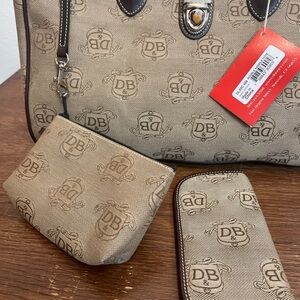 NWT Dooney & Bourke Monogram Double Handle Tote + Coin Pouch & Wallet