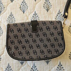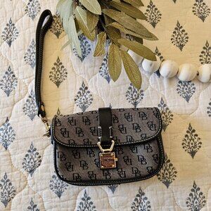 NWT Dooney & Bourke WI12 Monogram Black Canvas Mini Wristlet Bag