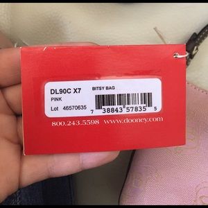 NWT Authentic Dooney & Bourke pink bitsy bag. Brand new, perfect condition. Still has original tag and plastic that it came in. Perfect to take out with a small wallet and lipstick. Pattern is classic D&B and not too showy. 5" tall by 5.5" long by 2" wide