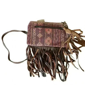 NWT Double J Saddlery Western Fringe Leather Brown Aztec Crossbody Purse