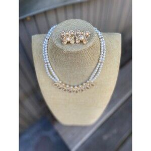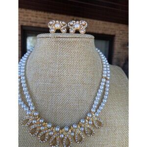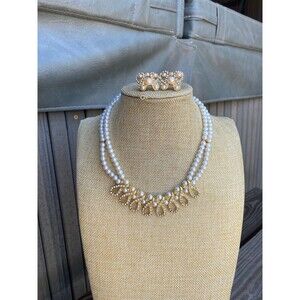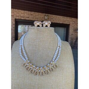 NWT Double Strand Pearl & Crystal Studded Jewelry Set Gold Accents Timeless gems