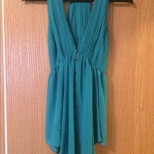 Beautiful Teal color with fun back detail! Fits more like a small!