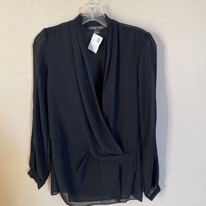NWT - Double Zero LS V-Neck Chiffon Cross Over Blouse - Size Small