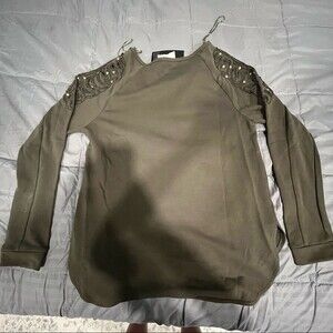 NWT Double Zero Olive Green Sweatshirt Shirt w/ Decorative Studded Shoulders S
