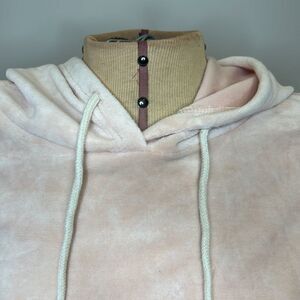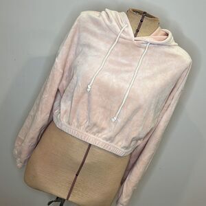 NWT Double Zero Soft Pink Velvet Cropped Hooded Sweatshirt - Size Large