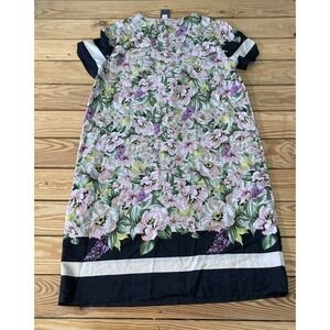 DownEast Women’s Pink Stripe Border Floral Dress Size Small