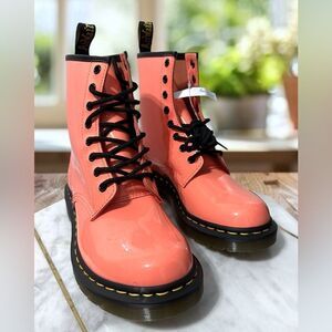 NWT Dr. Marten’s 1460 Patent Lamper Coral Pink Leather Boots Size 8 EU 39