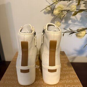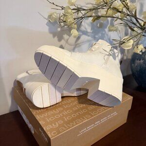 Still in the box! Dr. Scholl's Women's Time Off Up platform ankle boot in white faux leather. Size 8.5 M.