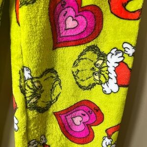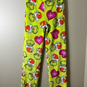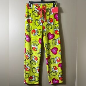NWT Dr Seuss Grinch Santa Hat Heart Pajama Pants Cozy Holiday Green Size Small