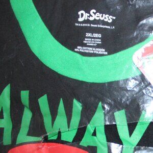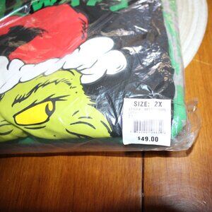 I bought these to wear and never did, BRAND NEW IN PLASTIC STIILL. comes from a smoke free home. It is a pajama set. Top and Bottom. Size 2X The front of the shirt says, "Always Naught, with the grinch wearing a Christmas hat. Top has long sleeves. The bottoms are green /gray strips with drawstring waist. They have light loose cuffs on the legs. washable, poly cotton blend. well made. Great for any grinch lover!!