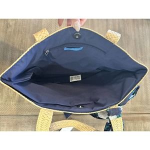 NWT Draper James Everyday Straw Tote Bag With Blue Floral Scarf Lined NEW