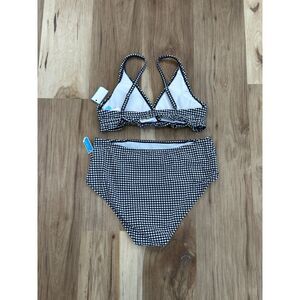 NWT Draper James Navy Blue Seersucker Triangle Bikini Swimsuit Size XL