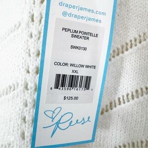 NWT Draper James Peplum Knit Pointelle Sweater Willow White Size XXL