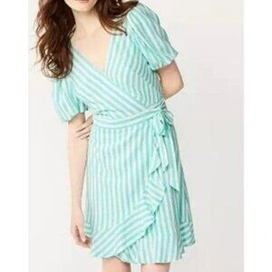NWT Draper James Teal and White Puff Sleeve True Wrap Mini Dress - Size XL