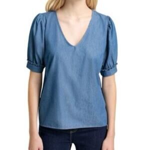 NWT Draper James V-Neck Puff Sleeve Chambray Top Shirt XXL