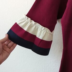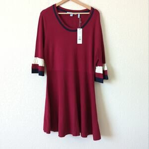 Draper James women's dress size extra extra large XXL striped bell sleeve sweater dress in deep berry multi brand new with tag retail $150 red blue white flared skirt crew scoop neck length 37 pit to pit 21" flat across waist 19" lots of stretch viscose nylon DRK0289