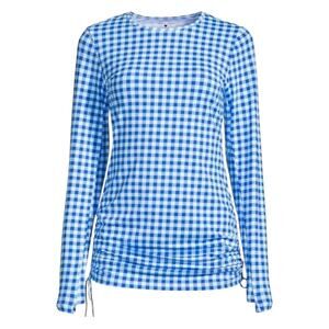 NWT Draper James X Lands End Blue Gingham Long Sleeve Tunic Rash Guard Large