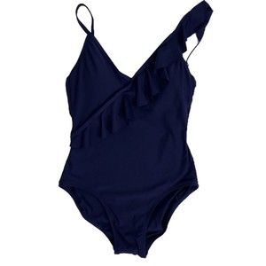 This flirty ruffle, paired with a beautifully cut neckline, create the ultimate one-piece swimsuit. Adjustable straps make it the perfect fit for everybody. Size Large