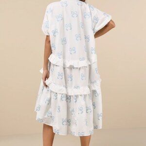 NWT Dream Sister Jane Cassia Oversized Tiered Ruffled Embroidered Bow Mini Dress