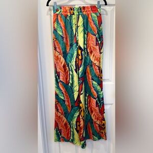 Bold leaf print wide-leg pants. Elastic waistband for comfort. Perfect for vibrant summer style. size S