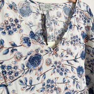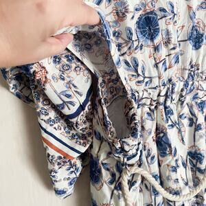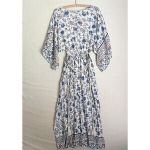 NWT Dress Forum Floral White, Blue, Rust Maxi Dress. Size small. Tassel belt. Open sides at waist. Side splits on skirt. Approx length -52in mid center, 55.in longest, 13in flat waist, stretched waist -15in. Beautiful.