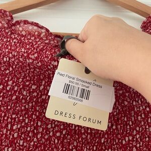 NWT Dress Forum Smocked Off the Shoulder Red Floral Mini Dress