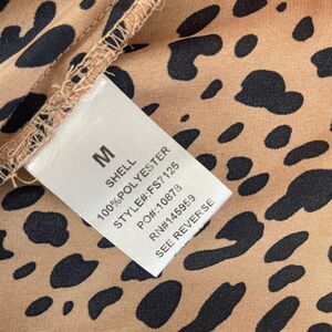 New with tags, dress forum, work to weekend, wrap skirt and blouse and 100% polyester satin in leopard print. Both the skirt and the top have a loophole to thread through and tie at one side. Long sleeve. Tax size medium but very flexible due to the true rap nature of the pieces. Lay flat the top measures approximately 24 inches shoulder to him and 19 inches armpit to armpit. The skirt is approximately 35 inches long 15 inches straight across the waist.