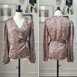 NWT Dress Forum Work To Weekend Leopard Satin Wrap Skirt Blouse M