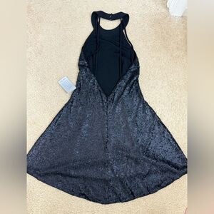 NWT Dress The Population 'ANNIE' Halter Sequin Black  Mini Open Back Dress Sz M