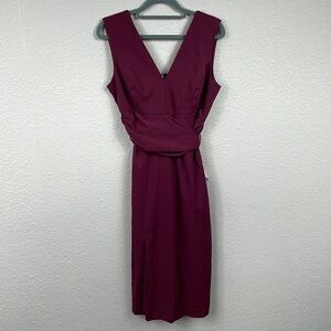 NWT Dress The Population Alessia Tie Waist Crepe Dress Burgundy Cocktail Sz L