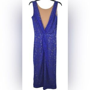 NWT! Dress The Population Blue V-Back Embroidered Lace Bodycon Midi Dress SZ XL