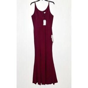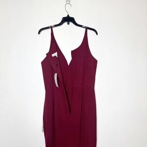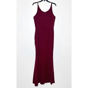 NWT Dress The Population Iris Crepe Gown Women's Side Slit Burgundy Size L
