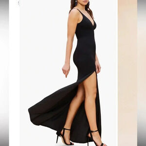 NWT!! Dress The Population - Iris Slit Crepe Gown - Black - Size Small
