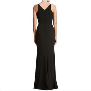 NWT Dress The Population Iris V-Neck Long Crepe Slit Gown Black Size XS