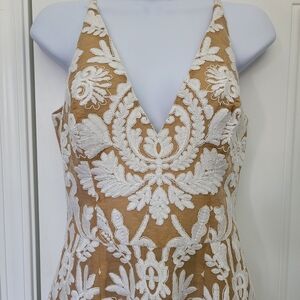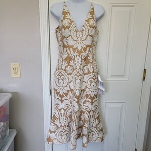 NWT Dress The Population Isabelle Dress Beige White Tulip Hem Sleeveless Small