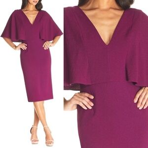 NWT Dress The Population Louisa Butterfly Sleeve Cocktail Dress in Dark Magenta