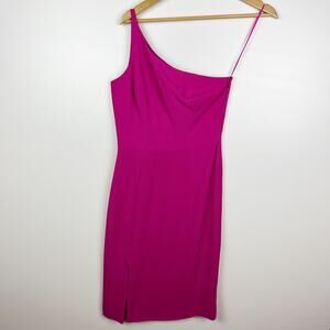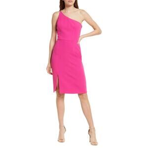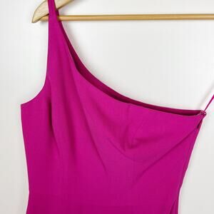 NWT Dress the Population Alexandra Asymmetrical Neckline Sleeveless Midi Dress in Bright Fuchsia Size X-Small