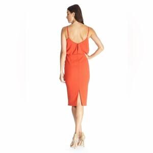 NWT Dress the Population Alondra Blouson Stretch Midi Dress Poppy Orange Small