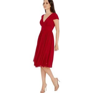 NWT Dress the Population Corey dress garnet v neck red midi XL