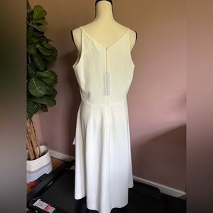 Dress The Population Emily off white A-line midi dress spaghetti straps size XXL (14-16, as per manufacturer). Asymmetrical buttons down front, Lined, zipper closure in back.