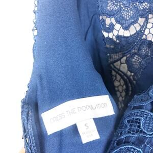 $218 NWT Dress the Population Hayden Lace Fit & Flare Dress Size Small Navy Cocktail