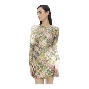 NWT Dress the Population Kensie Patchwork Sequin Open Back Mini Dress Small