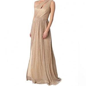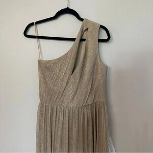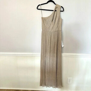NWT Dress the Population Kienna Metallic Cutout Detail One Shoulder Gown Size Md