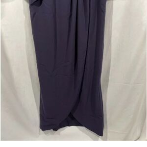 wedding guest dress, modern elegance, minimalist formal gown, purple maxi dress, jewel tone dress, draped silhouette, chic evening wear, deep hue fashion, NWT formal dress, peep detail neckline, elegant floor-length dress, long sleeve, 3/4 length sleeve, amethyst, crepe, knit