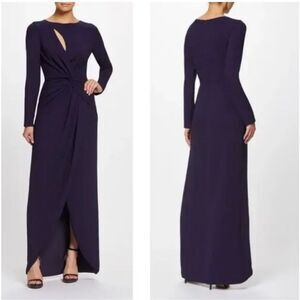 NWT Dress the Population Naomi Long Sleeve Twist Crepe Gown Sz XXS Boysenberry