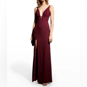 NWT Dress the Population Sz L Viola Burgundy Maxi Gown Dress.