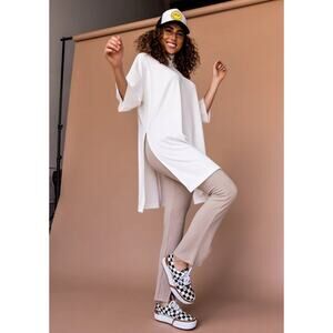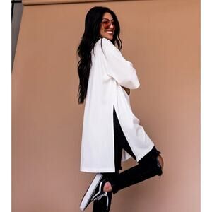 NWT Dressed in LALA Icon Oversized Mock Neck Ribbed Tunic Top Shirt White Small