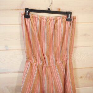 NWT Drew Jumpsuit Women S Strapless Emerson Linen Blend Salmon Striped Beachy